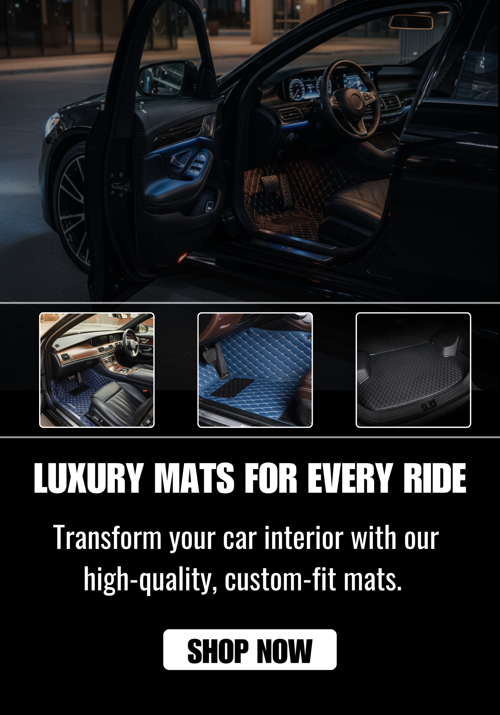 At Luxury Car Styling, we believe your car deserves the best. We specialize in creating premium, tailor-fitted car mats that combine style, comfort, and protection. Our products are designed to not only enhance the look of your vehicle but also provide long-lasting durability and safety.